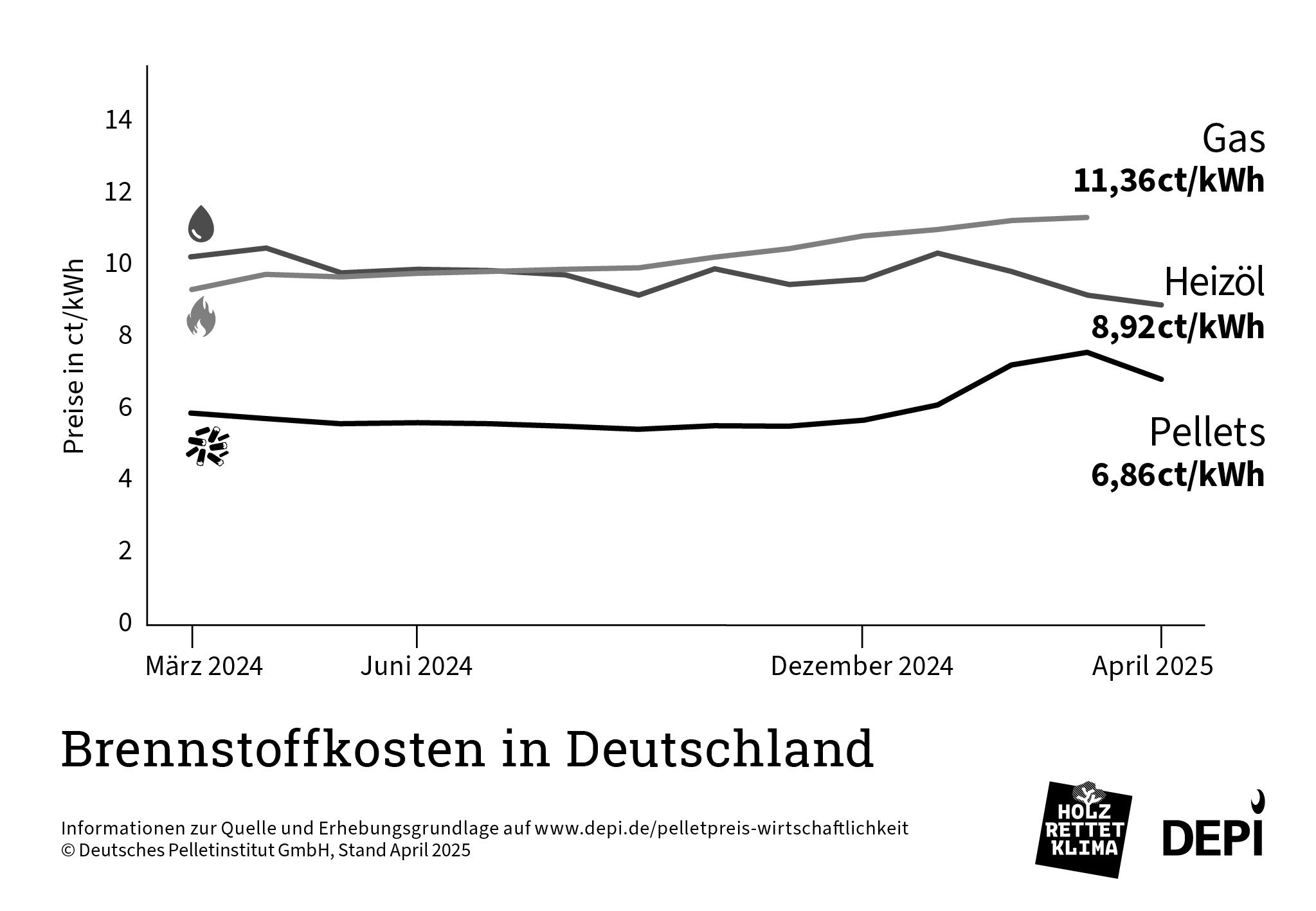 Brennstoffkosten in Deutschland (schwarz-weiß) - April 2025