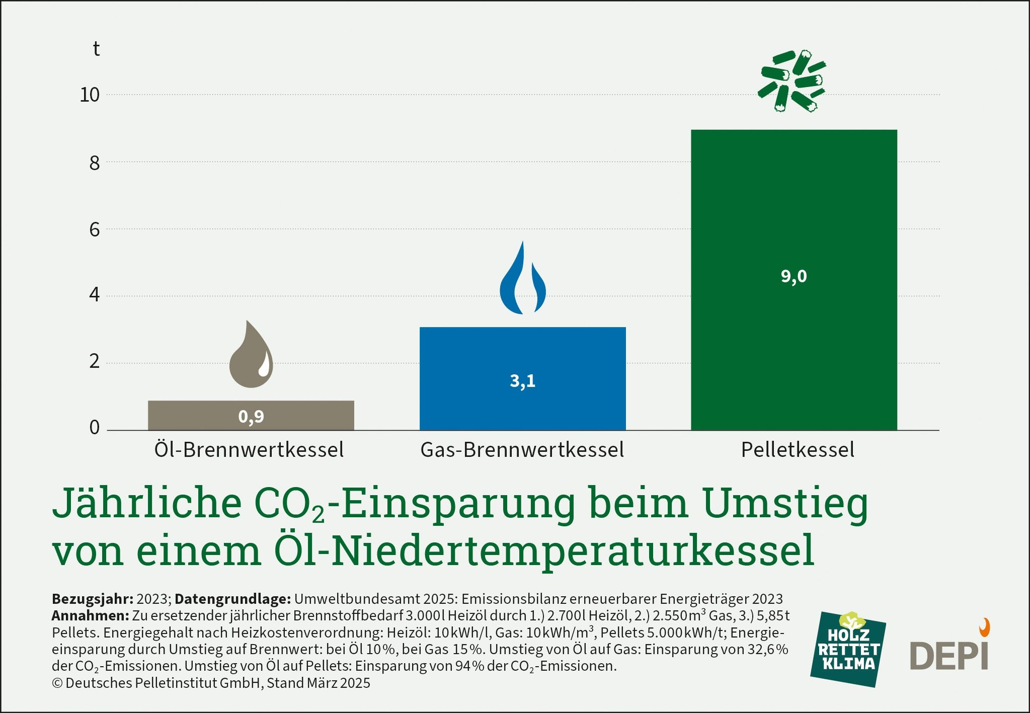 Jährliche CO2-Einsparung beim Umstieg von einem Öl-Niedertemperaturkessel
