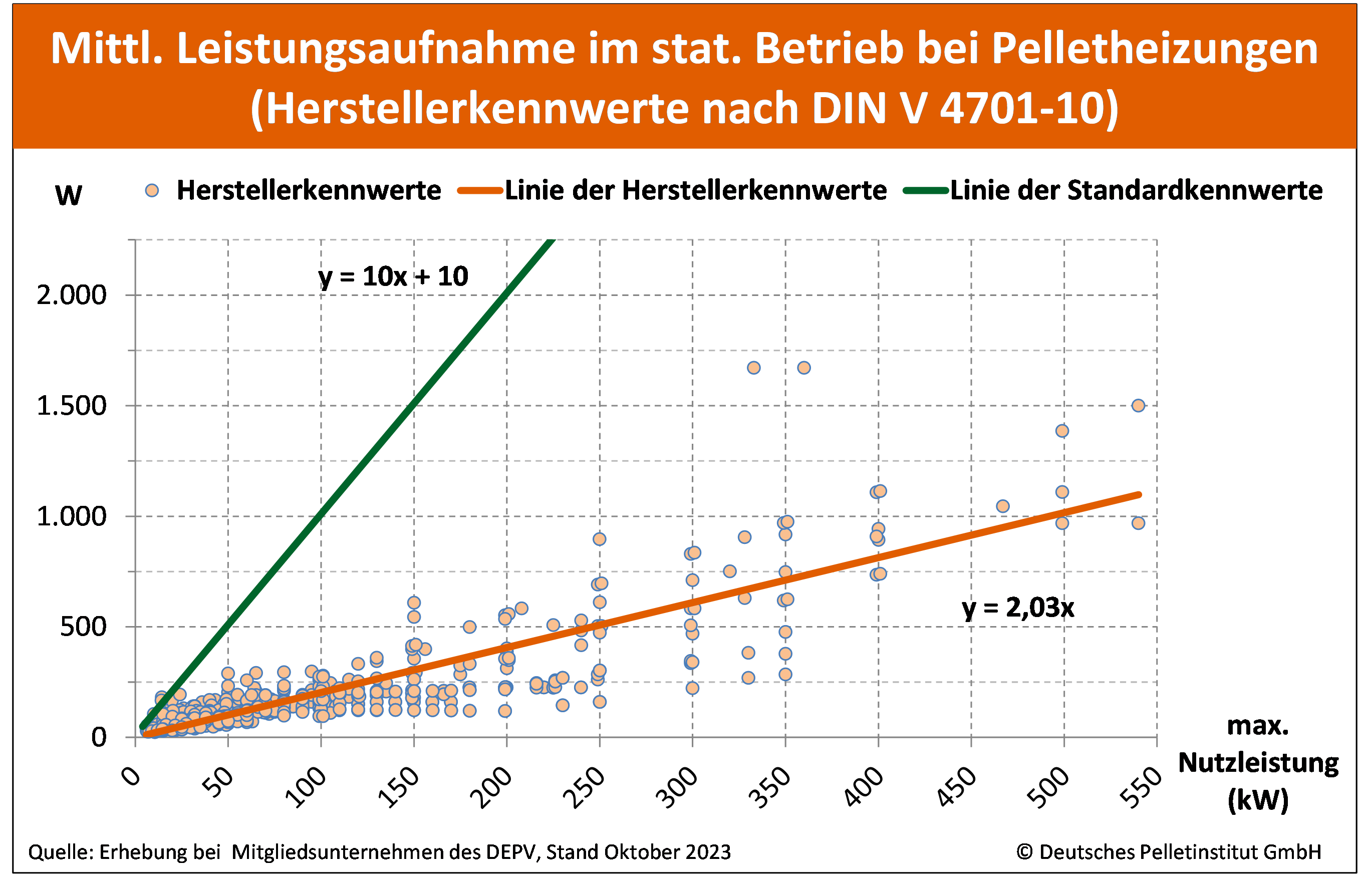 Mittlere Leistungsaufnahme im stationären Betrieb bei Pelletheizungen (Herstellerkennwerte nach DIN V 4701-10)
