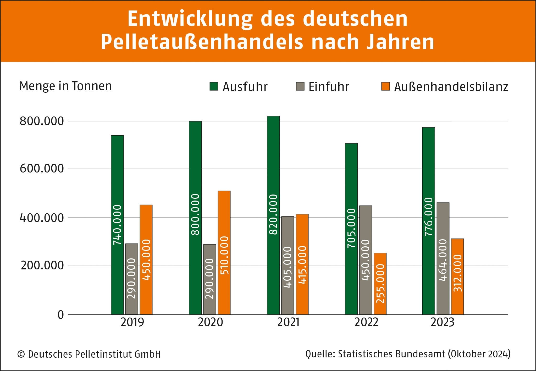 Pelletaußenhandel Deutschland nach Jahren