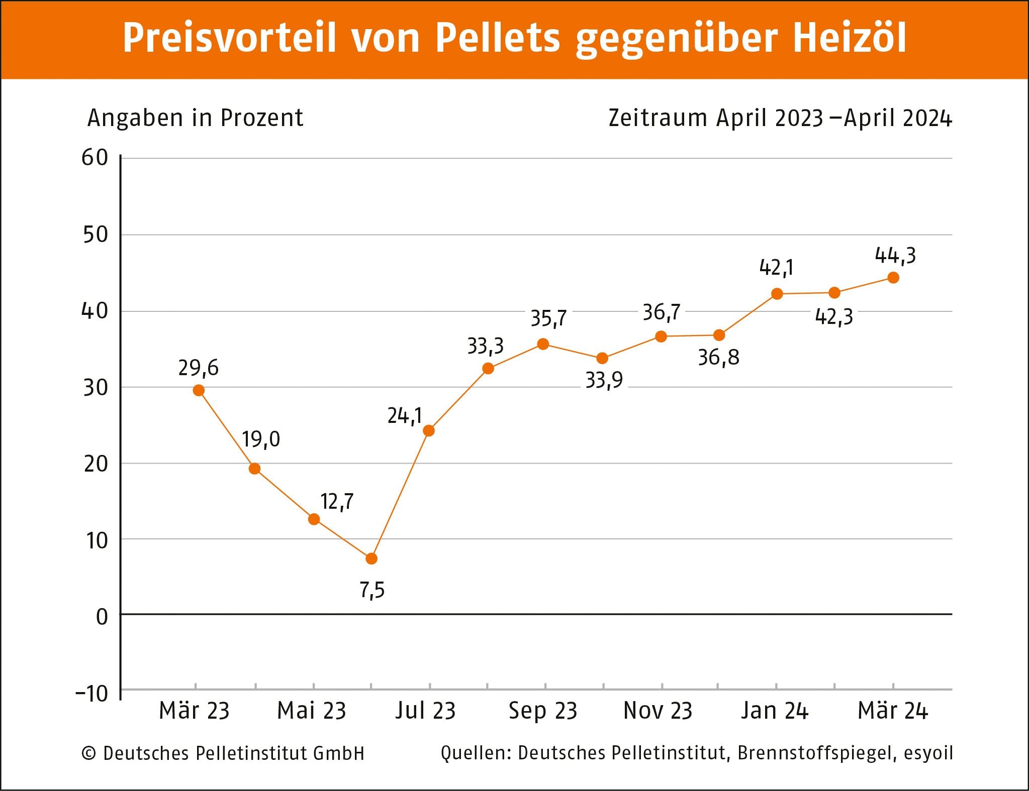Preisvorteil von Pellets gegenüber Heizöl – April 2024