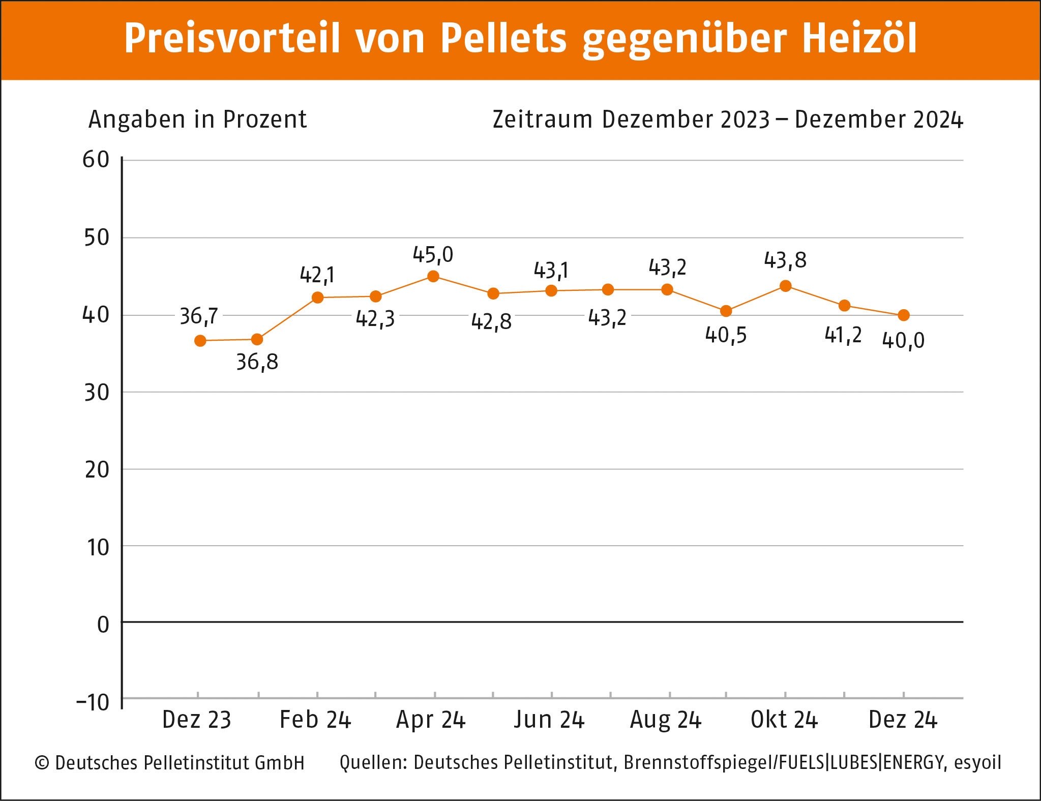 Preisvorteil von Pellets gegenüber Heizöl – Dezember 2024