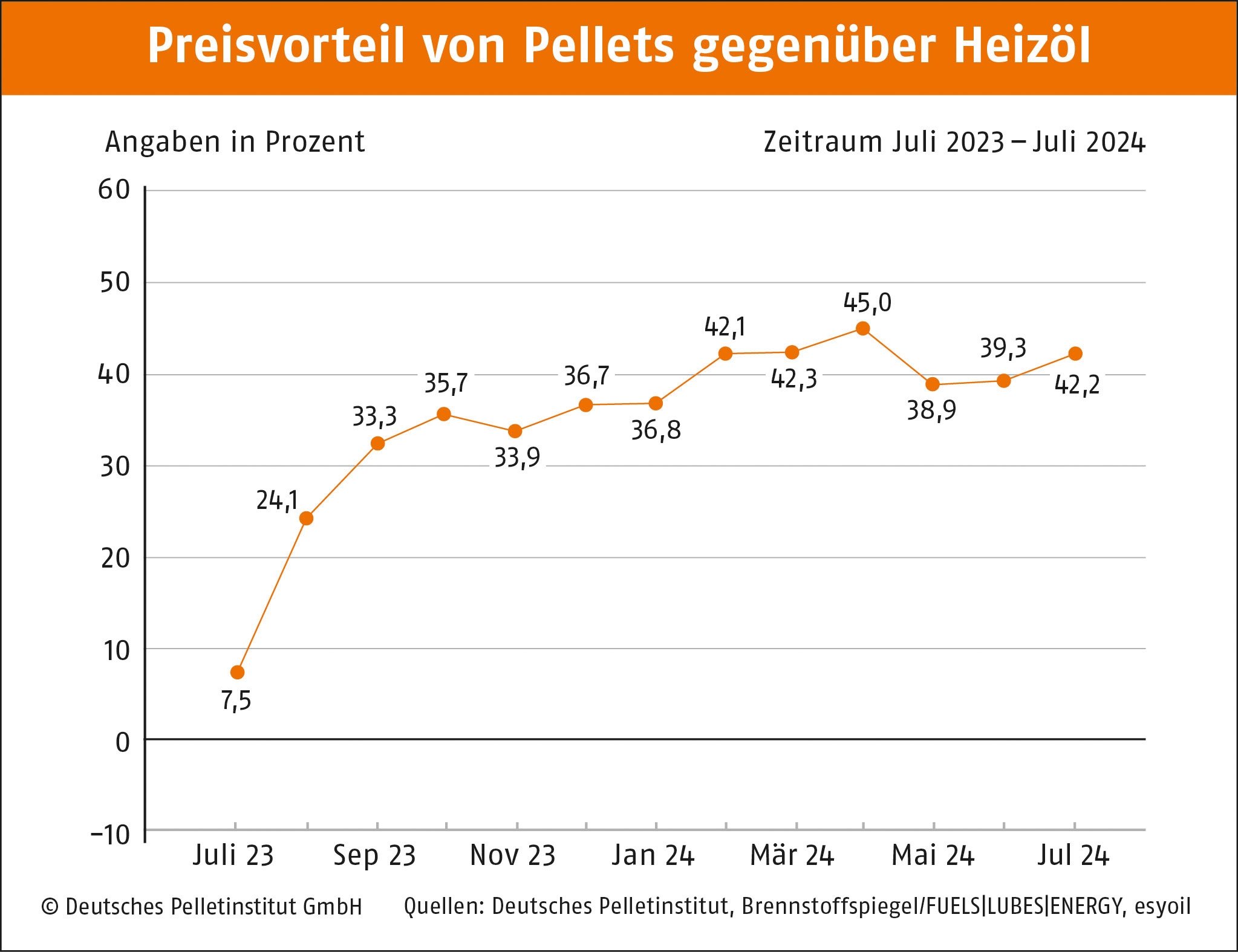 Preisvorteil von Pellets gegenüber Heizöl – Juli 2024