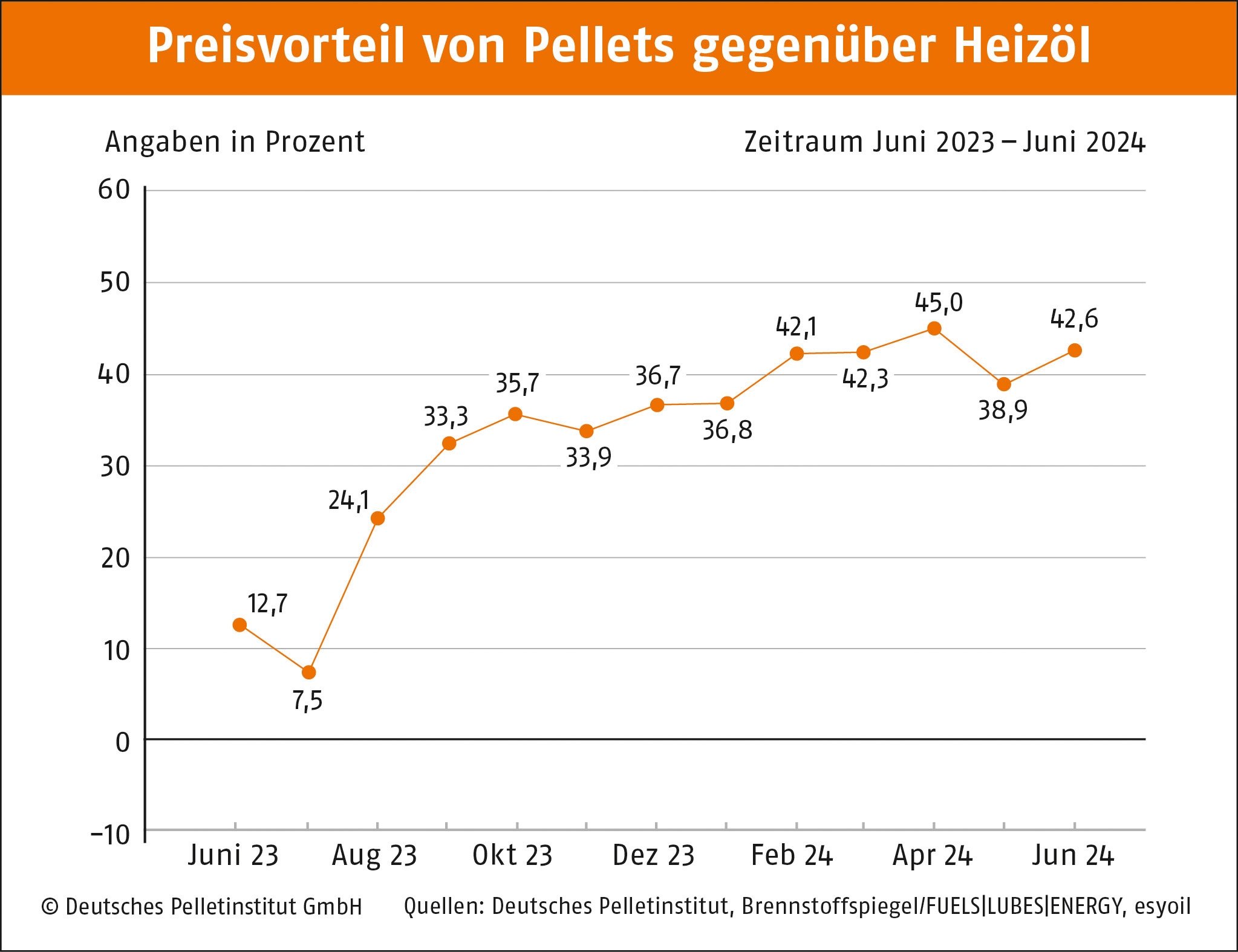 Preisvorteil von Pellets gegenüber Heizöl – Juni 2024