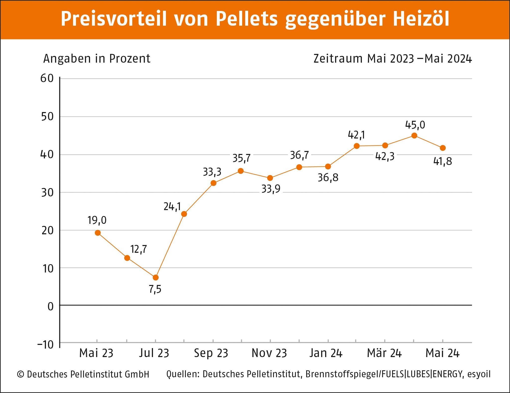 Preisvorteil von Pellets gegenüber Heizöl – Mai 2024