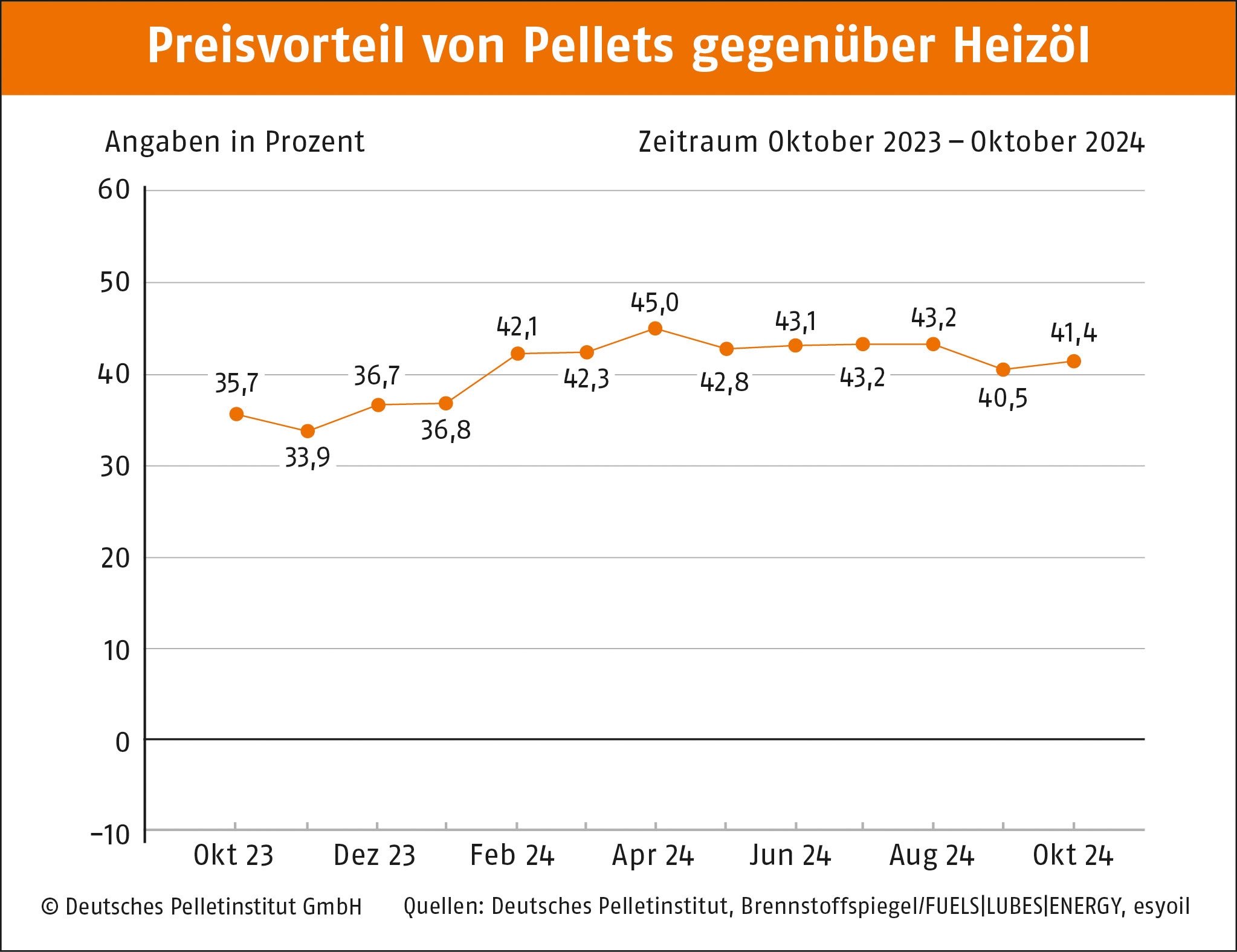 Preisvorteil von Pellets gegenüber Heizöl – Oktober 2024