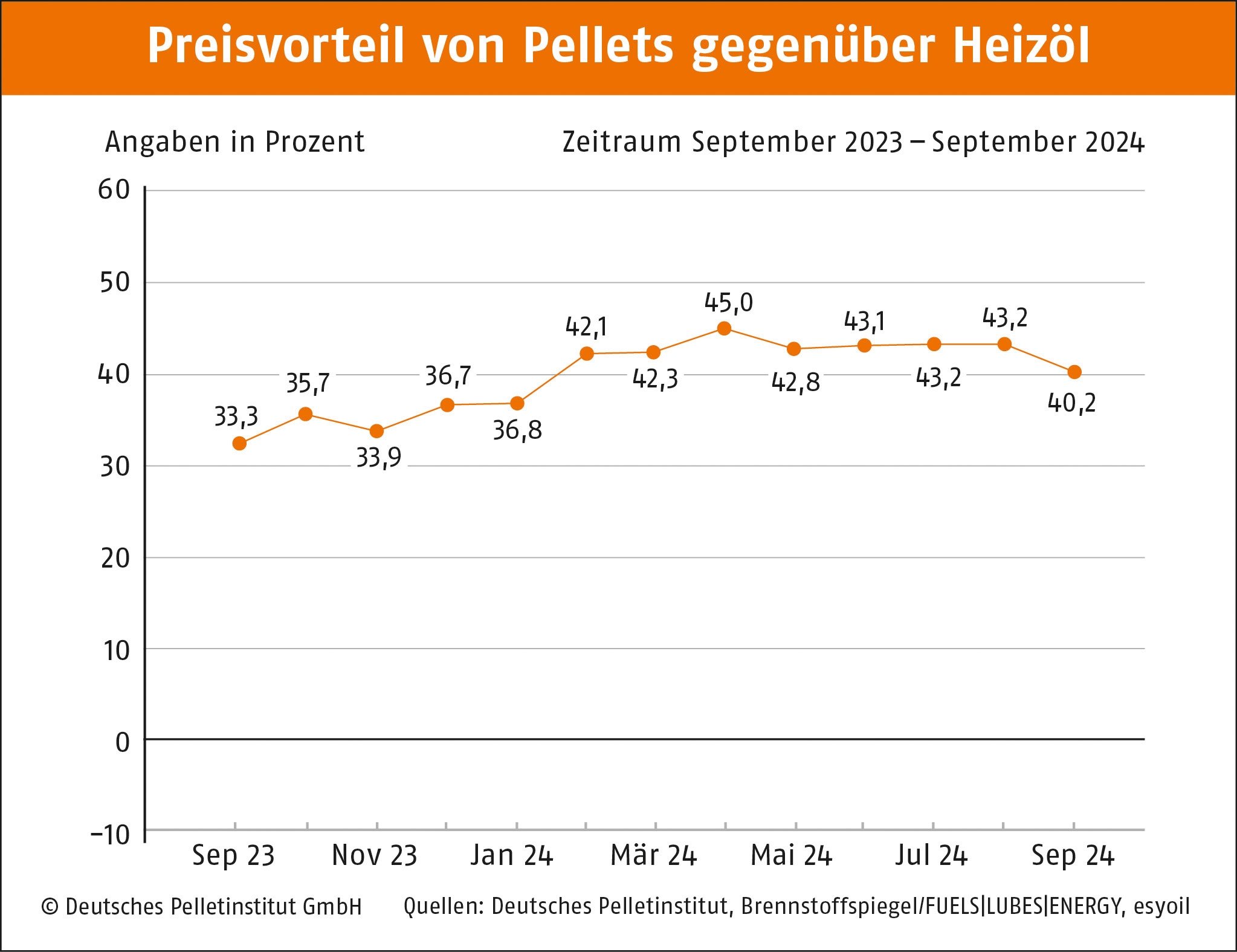 Preisvorteil von Pellets gegenüber Heizöl – September 2024