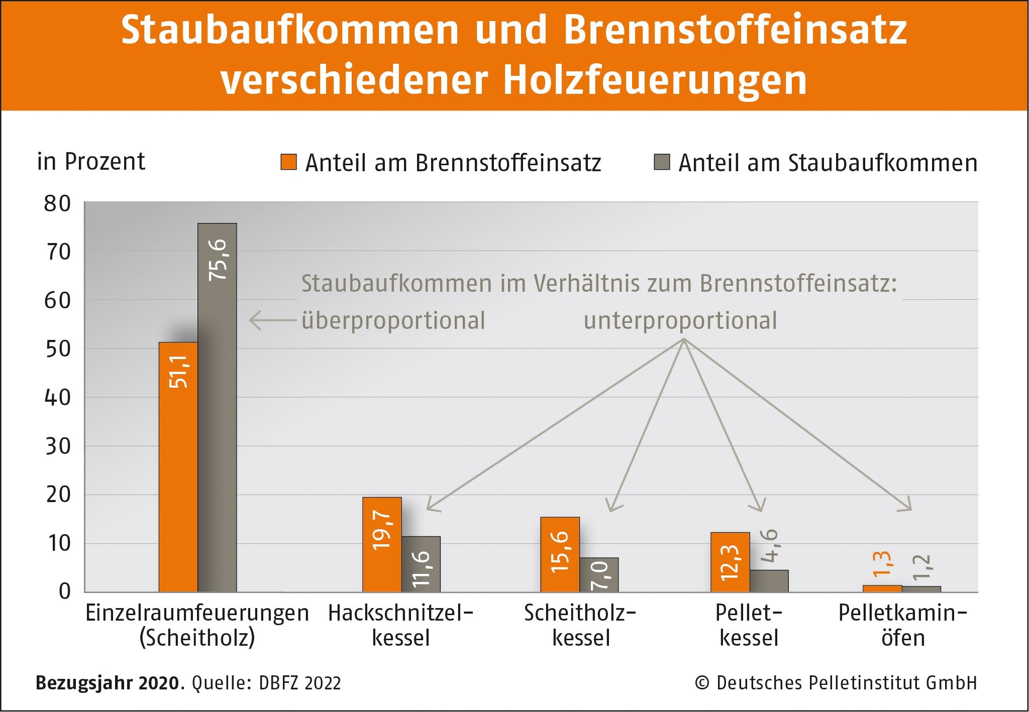 Staubaufkommen und Brennstoffeinsatz verschiedener Holzfeuerungen