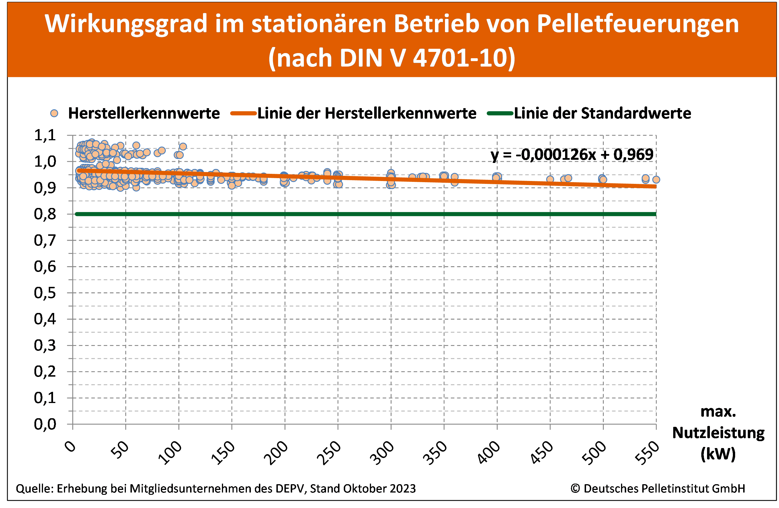 Wirkungsgrad im stationären Betrieb von Pelletfeuerungen (nach DIN V 4701-10)